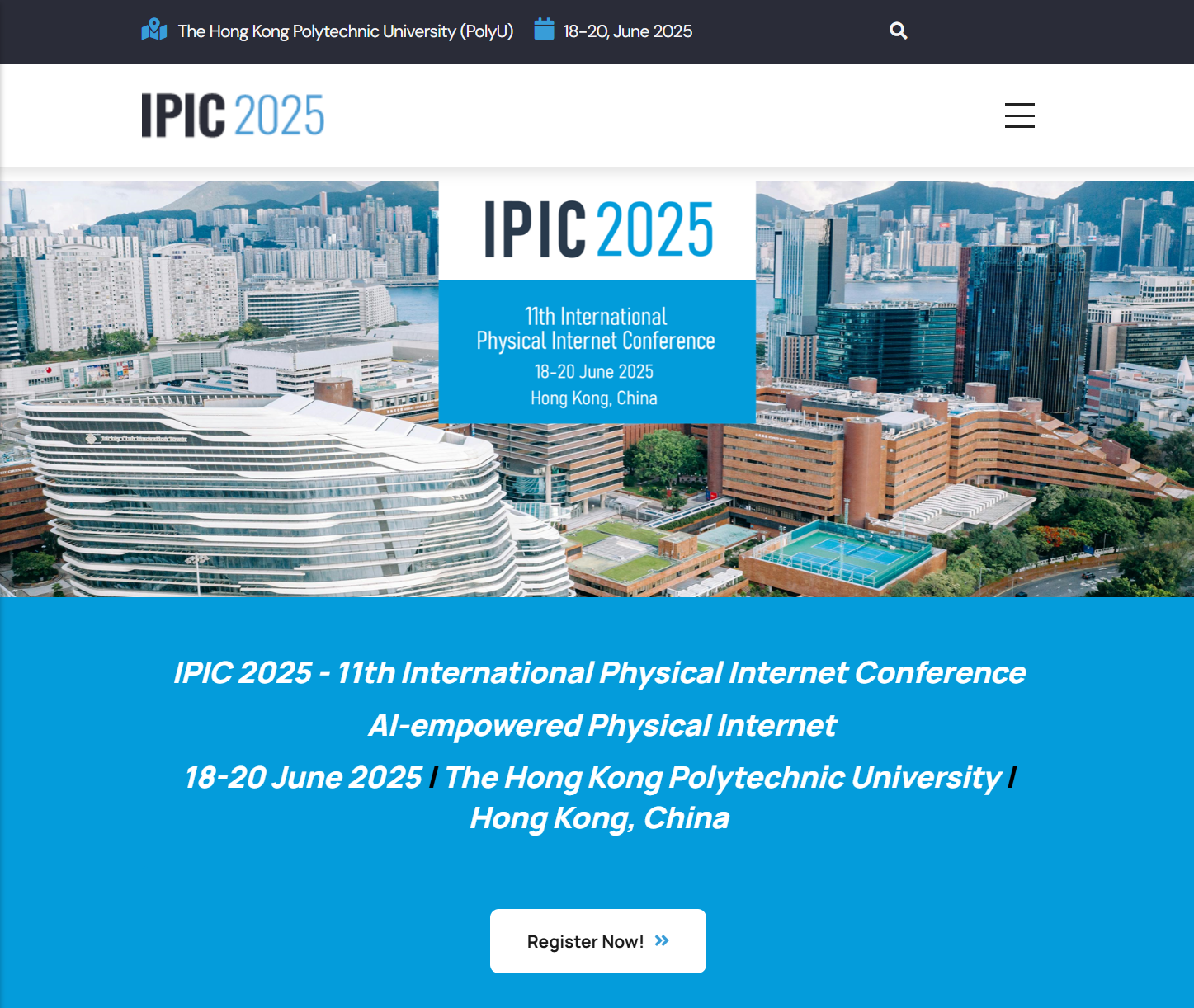 Please join us for the 11th International Physical Internet Conference taking place June 18-20, 2025 in Hong Kong, China at The Hong Kong Polytechnic University. The event is hosted by the Department of Industrial & Systems Engineering (ISE) and the Research Institute of Advanced Manufacturing (RIAM) of The Hong Kong Polytechnic University.