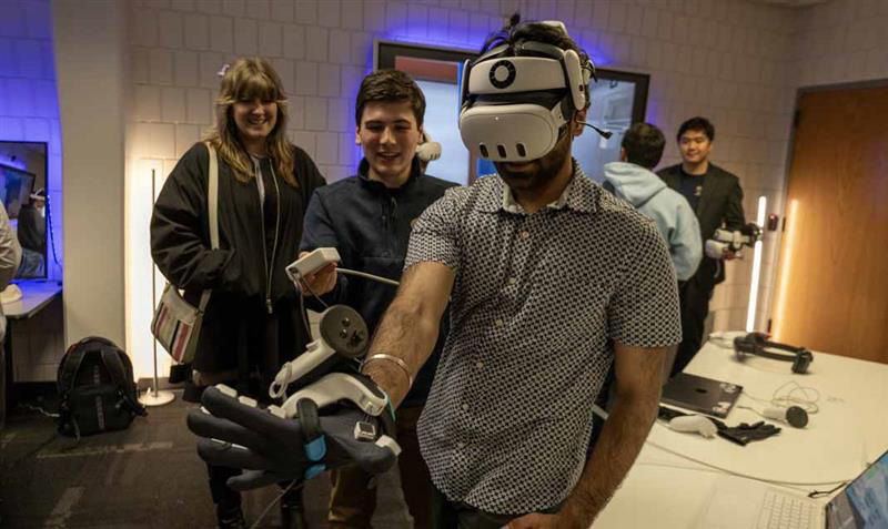 The Makerspace offers a wide range of equipment to support XR projects and experimentation, including Apple and Meta headsets, augmented reality glasses, haptic gloves, motion-tracking cameras, and 3D printers, enabling student and faculty research and exploration in extended reality.